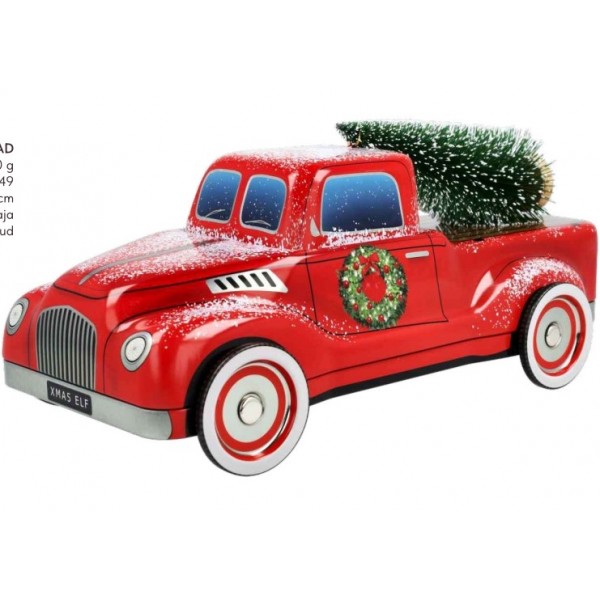 Lata con forma de abeto rellena de bombones de chocolate belga. 150g...